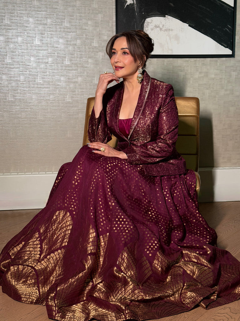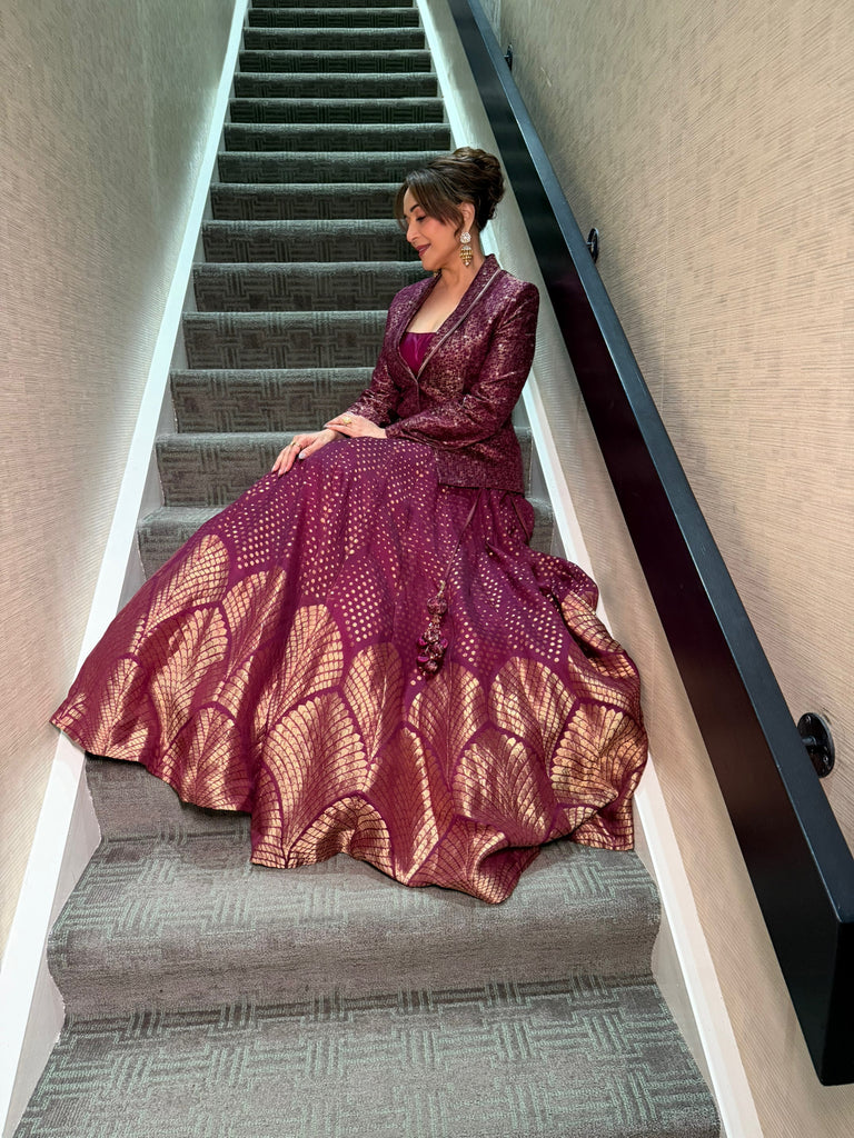 The Mosaic Collection presents an exquisite fusion of traditional craftsmanship and contemporary elegance. This stunning kora lehenga, adorned with intricate golden zari weave, captures the timeless artistry of Banaras. Paired with a refined silk blazer, it seamlessly transitions from festive celebrations to upscale occasions. The luminous zari detailing creates an ethereal shimmer, while the luxurious silk drape ensures graceful movement and unparalleled comfort. Perfect for the discerning woman who appreciates heritage textiles with a modern sensibility.